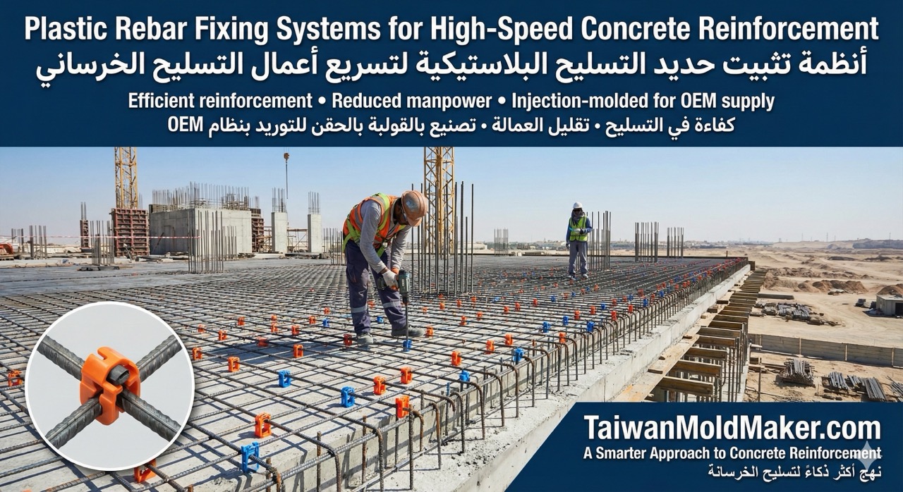 تقدم TaiwanMoldMaker.com خدمات تصنيع حسب الطلب لأنظمة تثبيت حديد التسليح البلاستيكية، وتشمل: