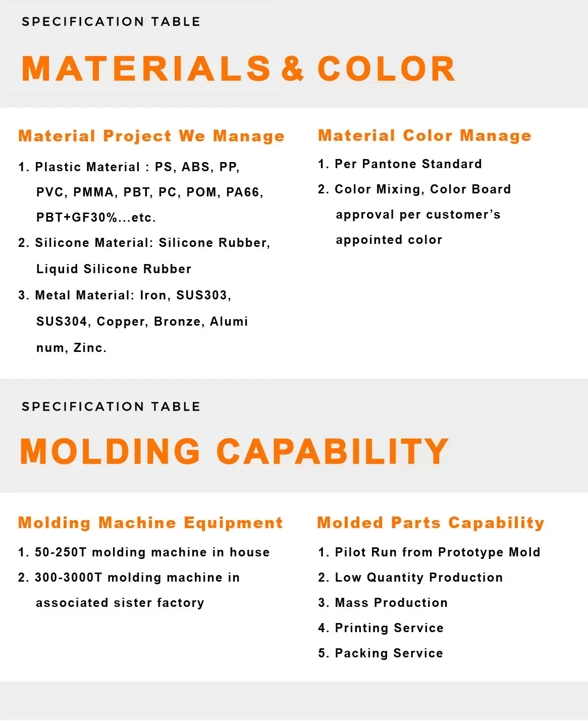 Injection Mold, Silicone Molding, Rubber Mold, Silicone molding, PC High-Gloss Plastic Mold, Die Casting Mold, Silicone Mold, Silicone Rubber Mold, Liquid Silicone Rubber , Cosmetic Packaging Mold, Medical Products Mold, Engineering Plastic Molds, Home Appliances Mold , Plastic injection molding, etc.